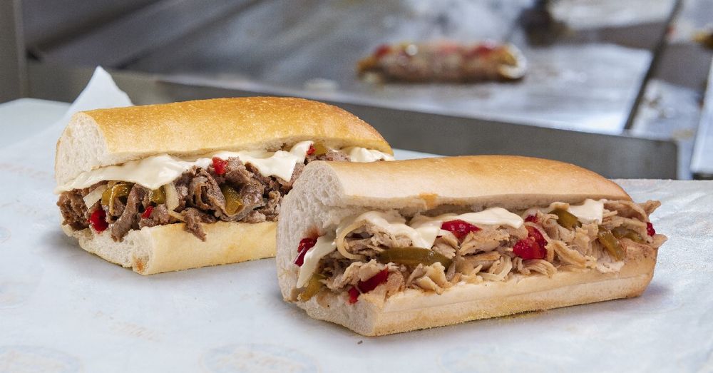 Chicken, fresh portabella mushrooms, peppers, onions, and white American cheese. Grilled fresh..